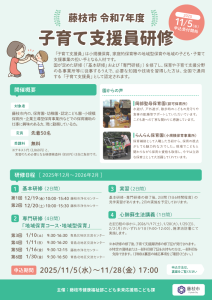 令和7年12月19日(金)より、藤枝市主催「子育て支援員研修」を開催します。